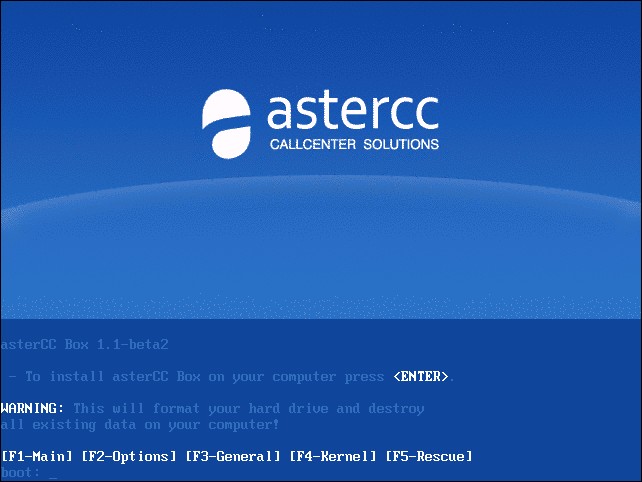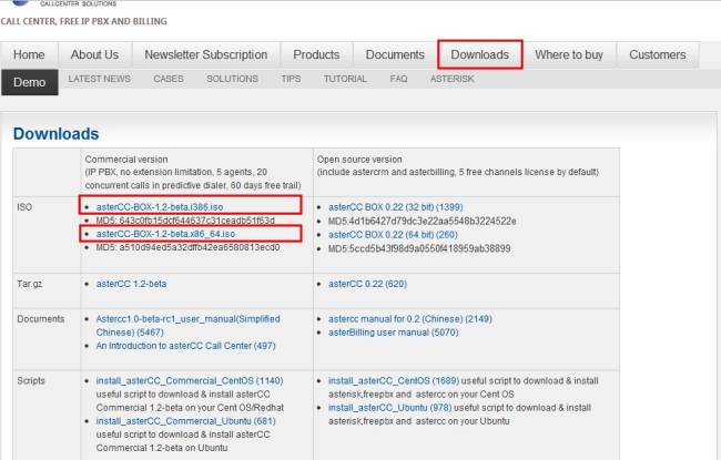 * first go to http://astercc.org/downloads, download the ISO file for burning a CD, please choose i386(32 bit) or x86_64(64 bit) based CPU of the server