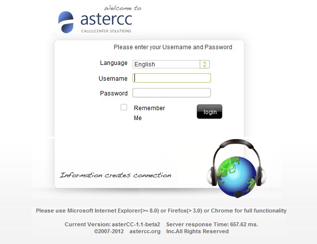* open your browser, enter the IP address, if all goes well, you will see asterCC login page