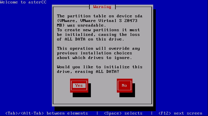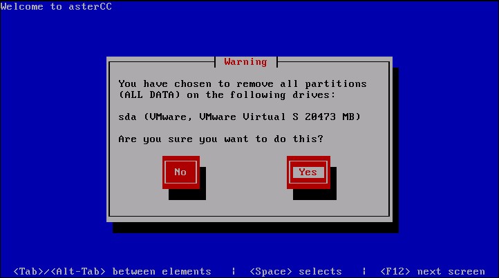 * if you select use whole harddisk, it will give the WARNING, just select YES to continue