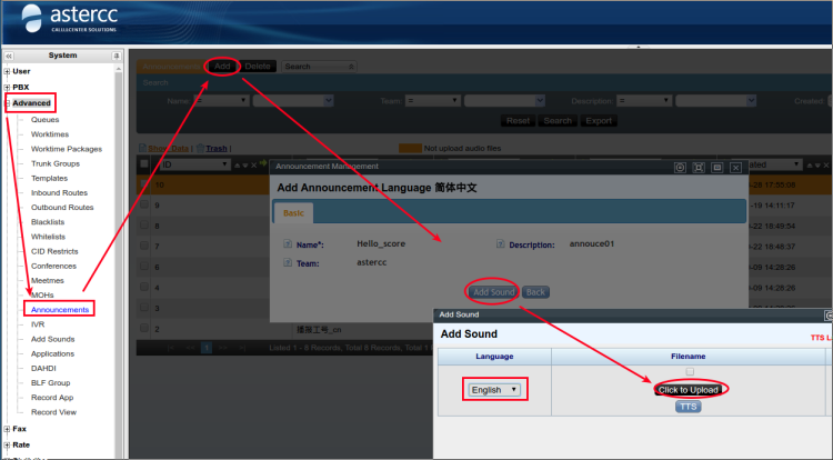 On the [Advanced]→[Announcements] page,you can upload announcement via click the [Add] button,as follows:
