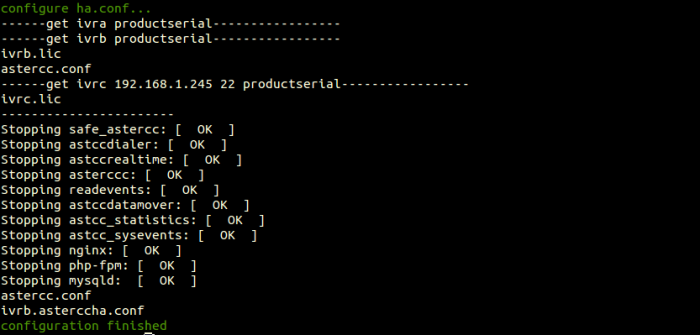 So far,the configuration is finished.After the script is finished,log and shutdown the slave server and other servers that running PBX service only: