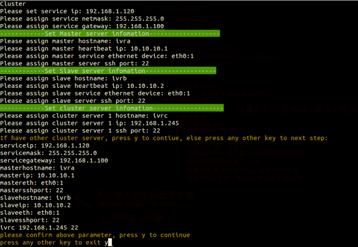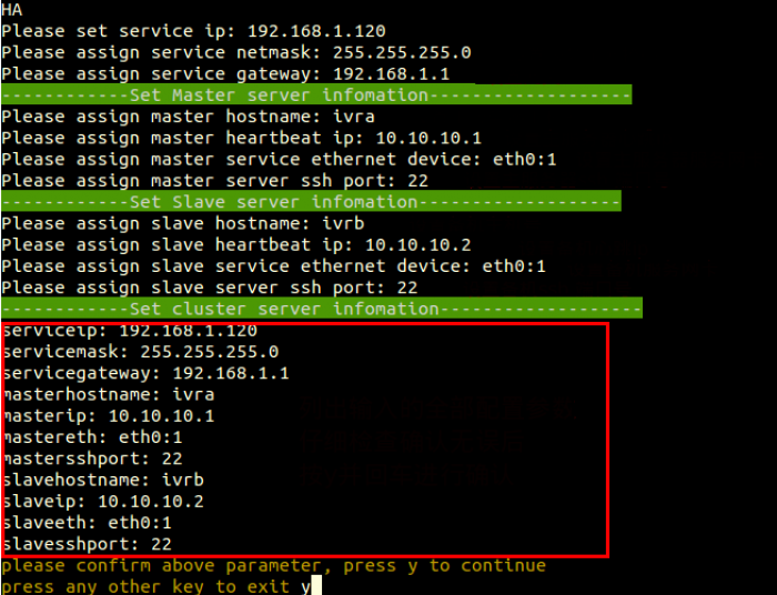 Input the parameters as the prompt of script above,press “y” if you confirm parameters above.