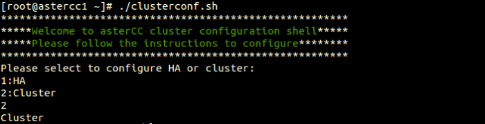 Select the type of configuration,input 2 means “Cluster”,as shown above: