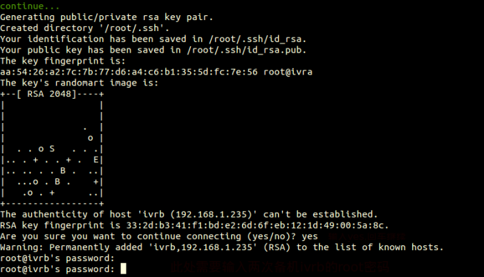 Press “Enter” after inputting the possword of slave server twice,as shown below: