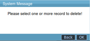 3.The system will prompt that “Please select one or more record to delete!” when you don't select no date to delete,as it shown below: