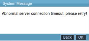 5.The system will prompt that “Abnormal server connection timeout, please retry!” if you don't manipulate the system for a long time,as it shown below: