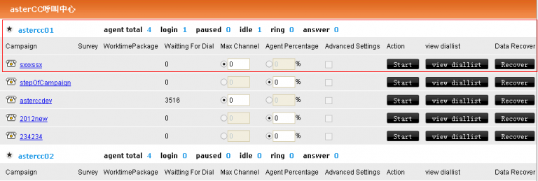 “Sxxssx” is the compaign assigned to the agent group “astercc01”. Followings are some of the fields: