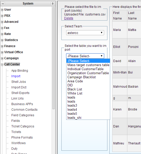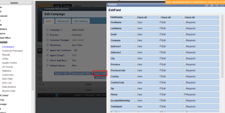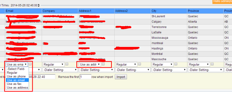 From version 2.1, we provide a new features named “Import & Start”, for a new campaign or new main table, system will create all fields based on the file you import, you don't need to set customized fields and change orders any more.