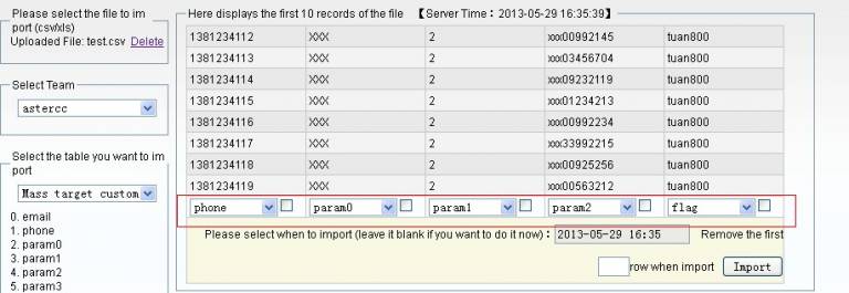 When you are sending mass sms, the system will correspond the data row with the parameters according to the customer information and sms template. The information will replace the variables automatically.