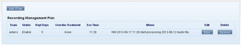 由于系统运行环境下的硬盘空间有限,无法长期保留大量的录音文件。所以我们需要设置一个电话录音处理计划,系统后台脚本会按照此计划对录音进行转移(转移到服务器挂载硬盘)或直接删除。