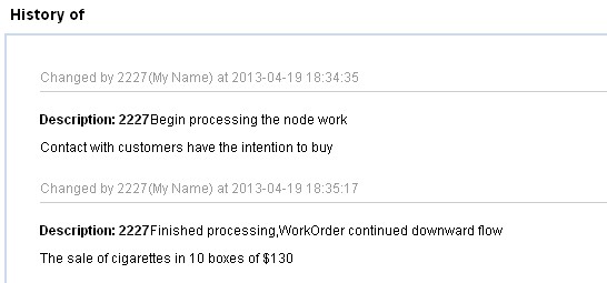 History shows all note of the work order
