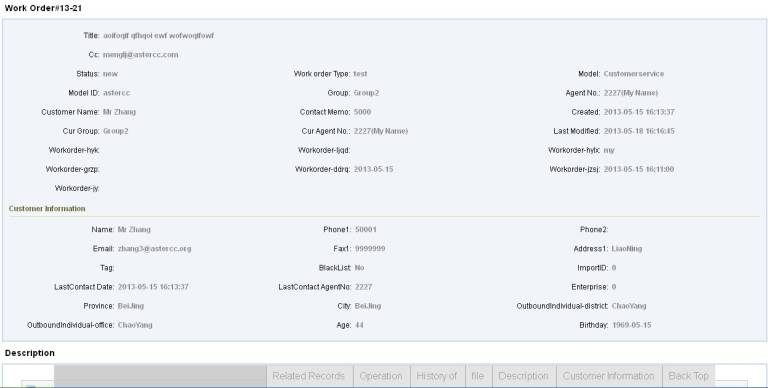 Agent No.: Agent number or empty(means the work order is not assigned yet