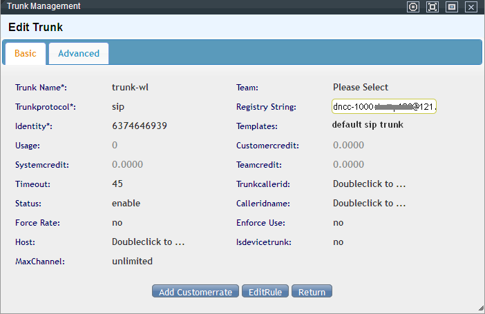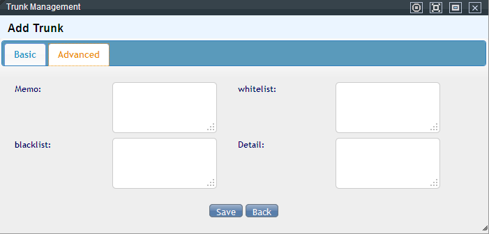 In the “Advance”, you need to enter the configuration parameter of the trunk in the “Detail”.