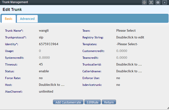 Black font, double-click to edit the modified mouse to leave the system to automatically save the information, in gray can not be modified, click the “Edit trunks rules, you can edit trunks rules can also set a good trunks rules to delete, click the “Delete” button.