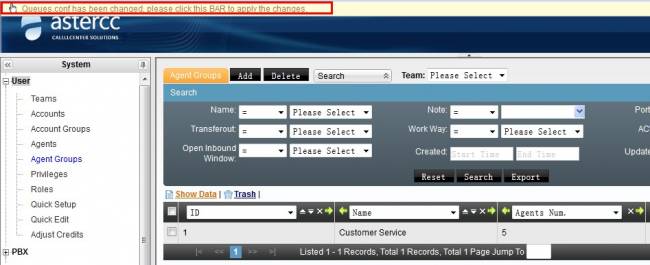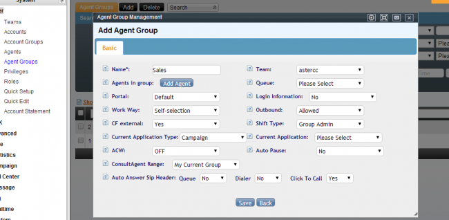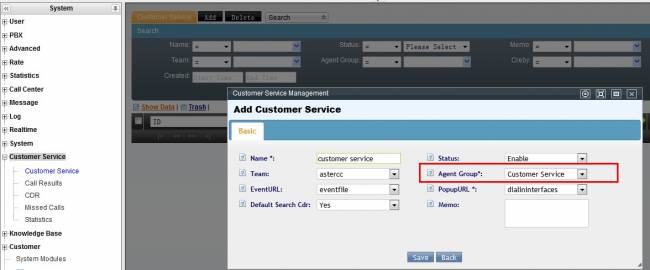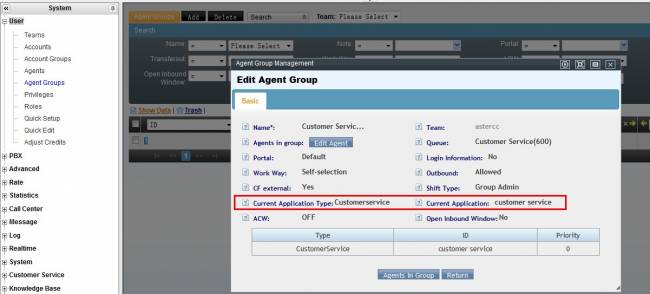 • Go to [User]→[Agent Group], double click the agent group, make sure the current outbound business is the customer service we just created