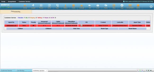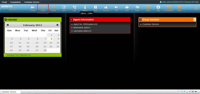 • Agent could only work when he's checked-in, click [Login], agent will check-in all agent group he belongs to.