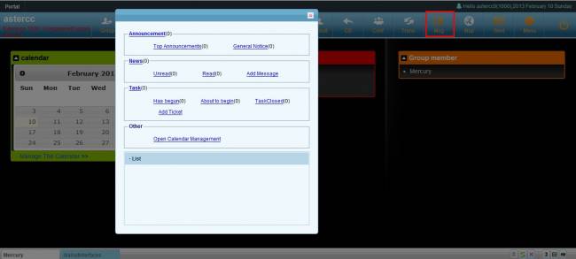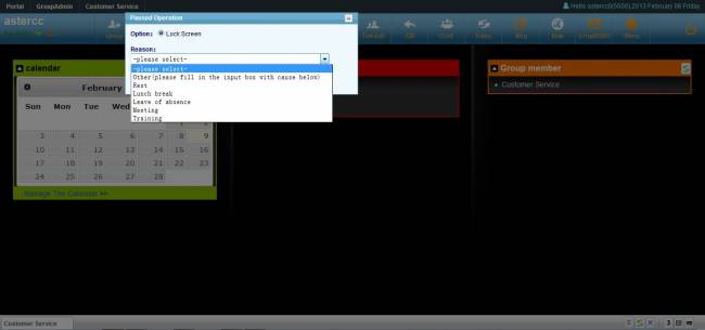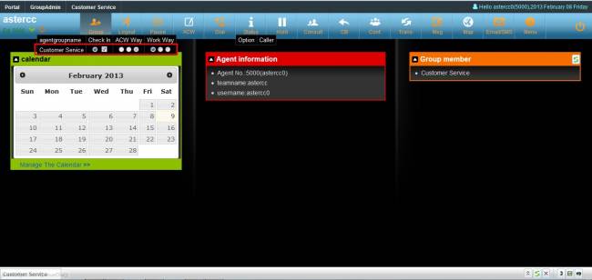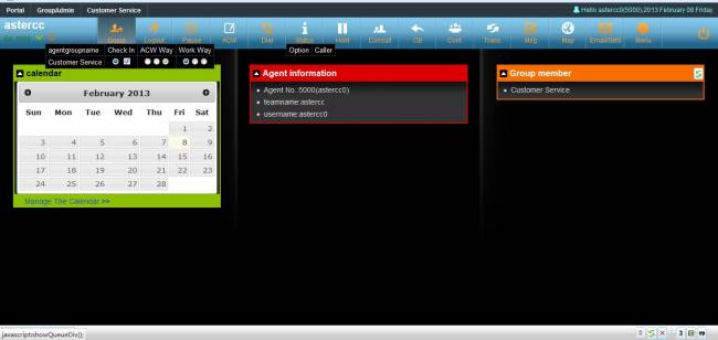 • In group panel, agent could choose which agent group he want to check-in, choose current agent group, ACW mode, work mode.