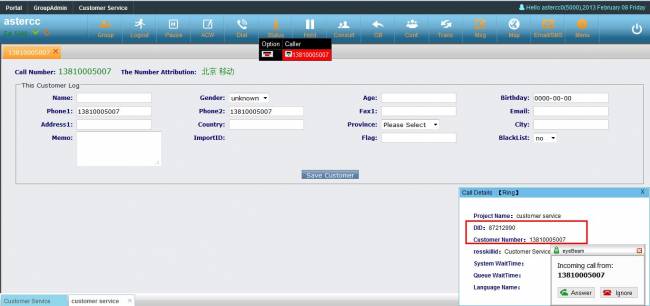 In order to get popup when agent have calls, we can install different modules depends our business, here we use the new customer service module as a sample.