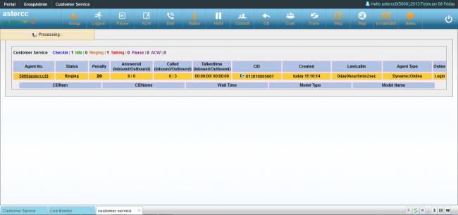 • Ringin, as long as the agent phone rings, whether answered or not, when it's end, agent will go to ACW mode