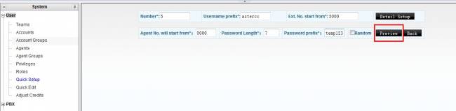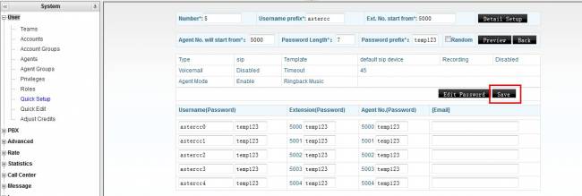 • Username prefix: astercc, all username of the accounts will start from astercc;