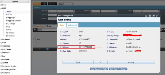 • 603 Declined: usually it's authentification error, please check the trunk configration, if your trunk requires Caller ID authentification, you can force the trunk use a Caller ID