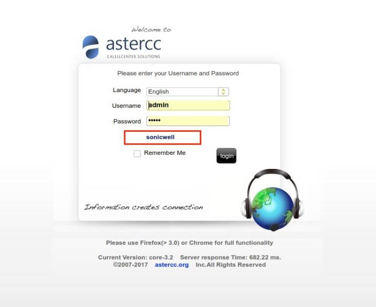 And if you would like to log into a specific team, you can use the address http://192.168.252.134/astercc (astercc is the identification for this team) or http://192.168.252.134/sonicwell (sonicwell is the identification for this team) or the SLD parsed to this host http://astercc.yourdomain.com http://sonicwell.yourdomain.com