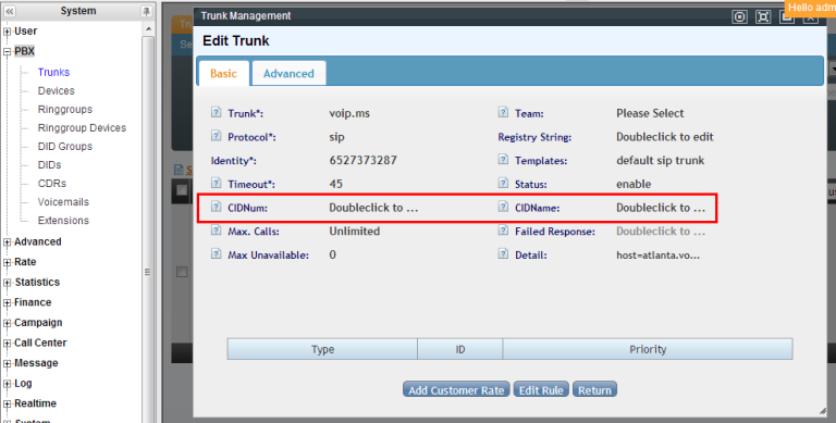 Trunk Caller ID