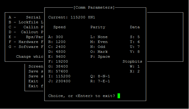 minicom –s