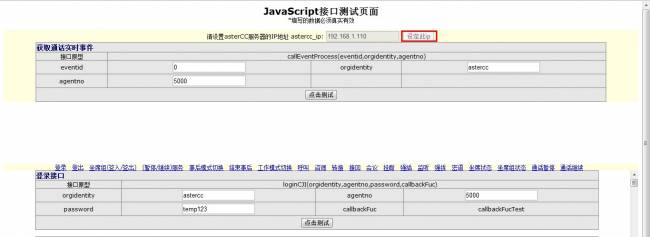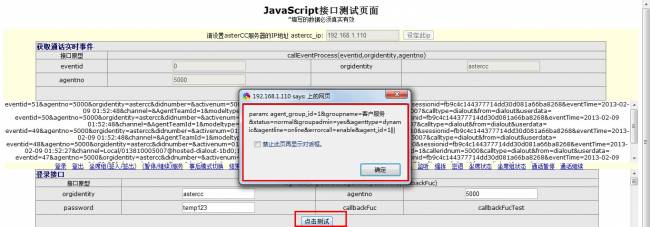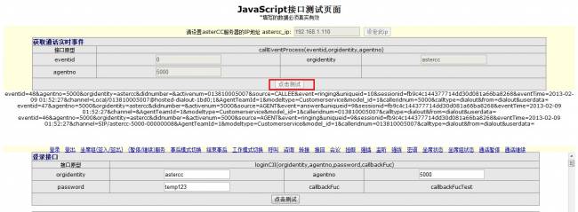 输入坐席工号和坐席密码,点击登录接口下的测试按键