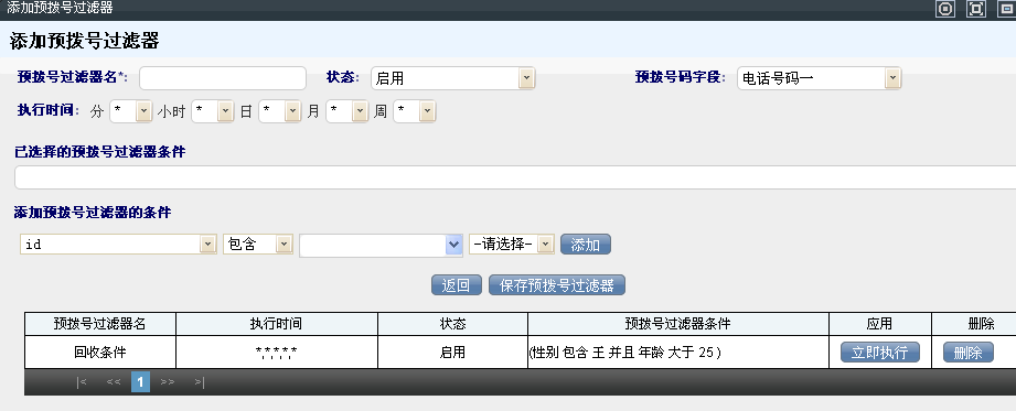 过滤器回收的号码不能与拨号列表当中的重复,也就是说当拨号列表中已存在的待拨的客户号码,是不会通过过滤器重复回收到拨号列表当中的
