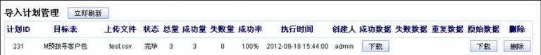 进入导入计划管理页面。刷新当前任务列表,当任务状态为完毕时,说明导入完成了。