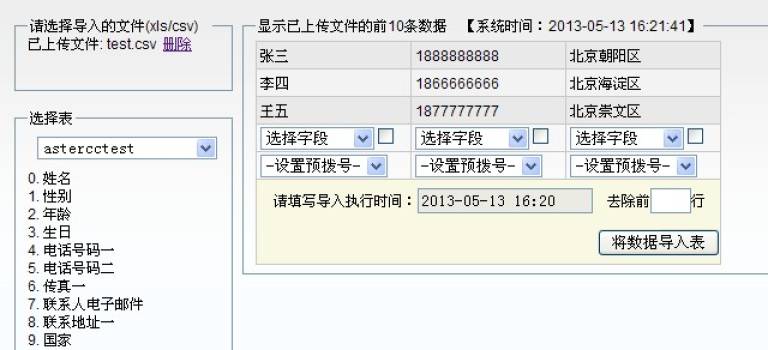 第二排 选择要把哪列放入预拨号列表中当作电话字段拨出(如果这排你没选,系统不会向预拨号列表里导入数据)