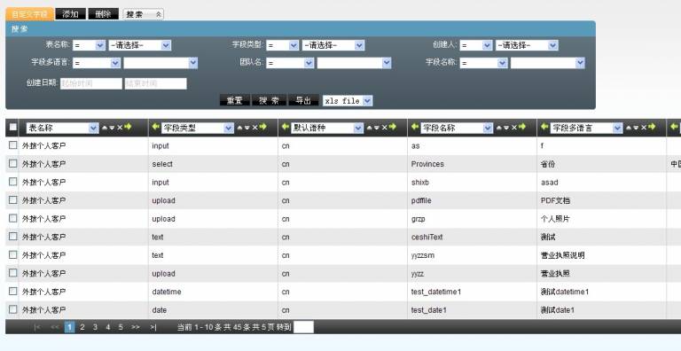 此模块还可根据搜索条件对增加过的字段进行编辑,删除,导出(csv或xls格式)。