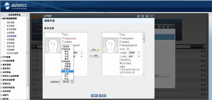 坐席是呼叫中心的基本单位,每个坐席必须属于一个用户,但是一个用户只能有一个坐席