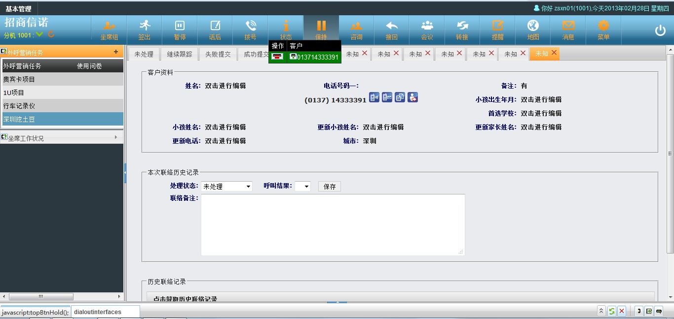 坐席在通话中可以利用咨询功能完成转接或者进入会议