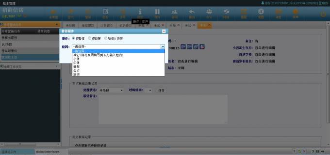 坐席需要暂时停止工作时可以使用暂停功能,暂停的合计时间和原因将会体现在坐席表现报表中