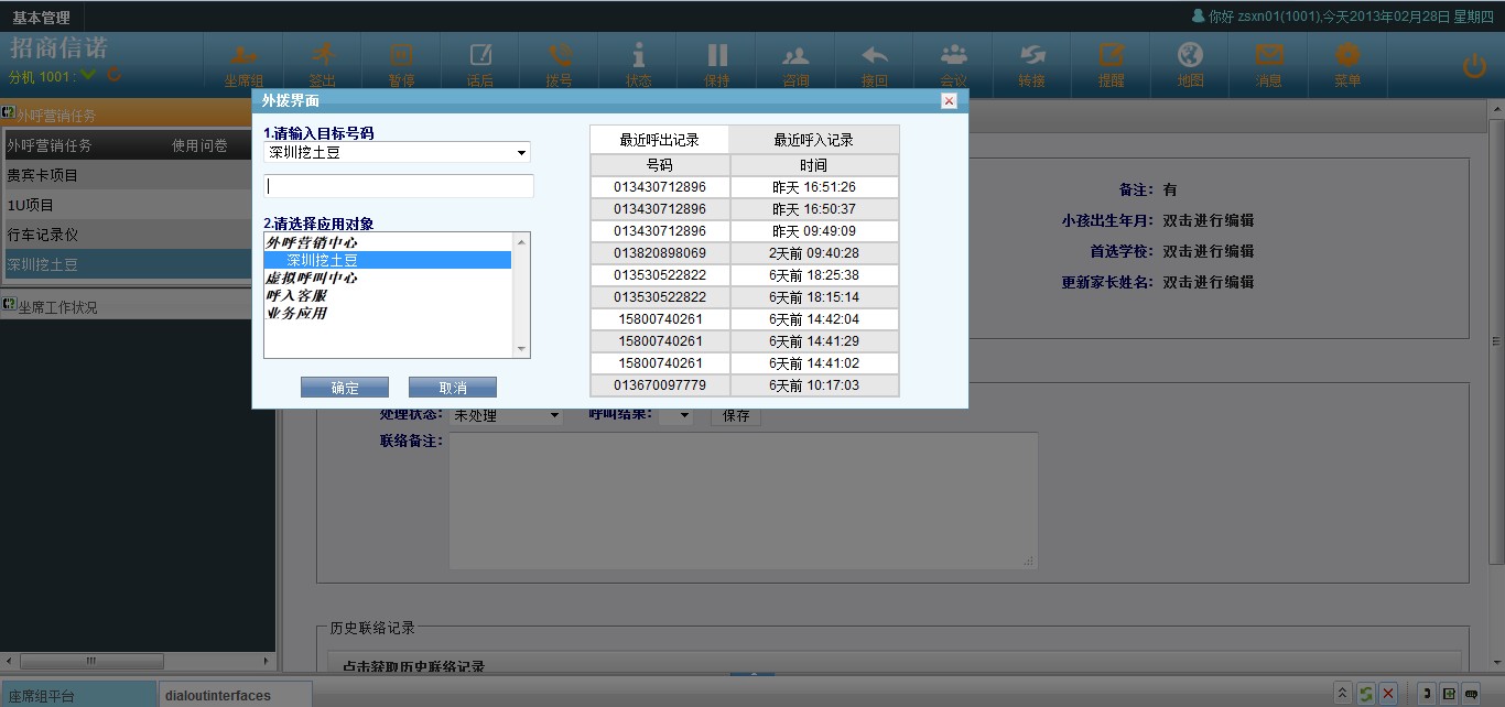 通直接呼出弹屏相同,分机需要开启坐席模式
