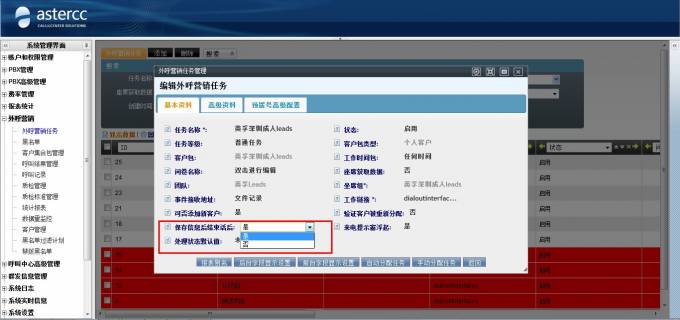 在外呼营销模块中,系统提供了保存数据自动结束话后功能