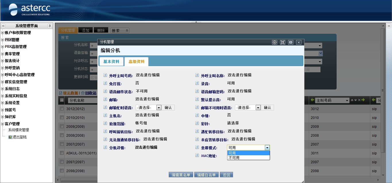 拨号的分机需要开启坐席模式