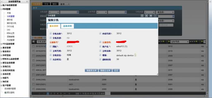 每个分机必须属于一个用户,一个用户下可以有多个分机,分机类型可以是网络分机(软电话、语音网关、IP电话),也可以是任意一个号码(例如手机或者座机号码)