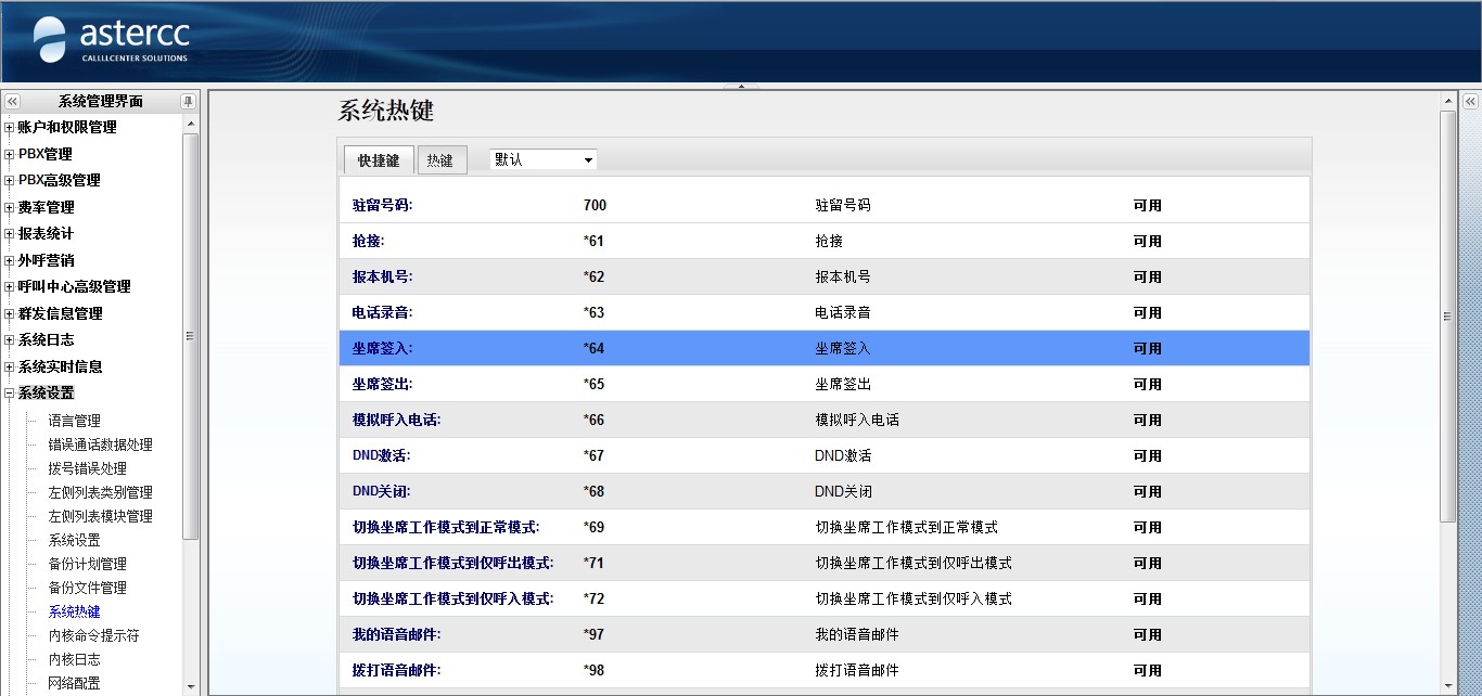 asterCC商业版系统中提供了多重业务类型供客户使用,包括