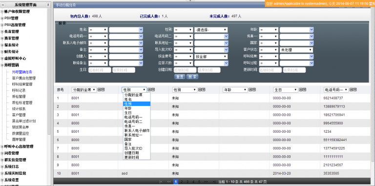 外呼营销任务中字段的控制