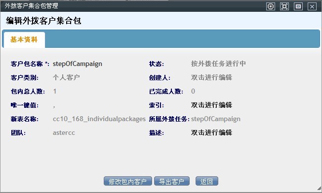 创建一个外拨客户结合包,自动创建的客户包的名称将会跟外拨任务的名称相同。