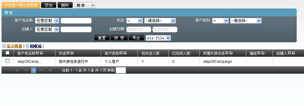 如果不想自动创建外拨客户集合包,就需要先手动添加外拨客户集合包。