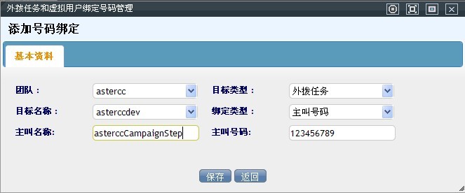 填写完成后,点击保存按钮,外拨任务将会有一个主叫号码绑定,当客户呼入的时候,将会通过主叫号码匹配相应的外拨任务。