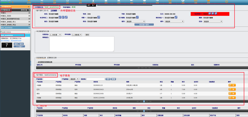 只要安装了电子商务模块,则在[外呼营销任务]→[添加],在添加营销任务界面就会出现“电子商务”一栏。对之前新建电子商务进行选择,点击[返回]。