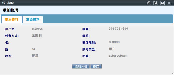 账 号:添加账号时由系统自动生成的一串数字,不可更改,用于标识你在系统中的身份;