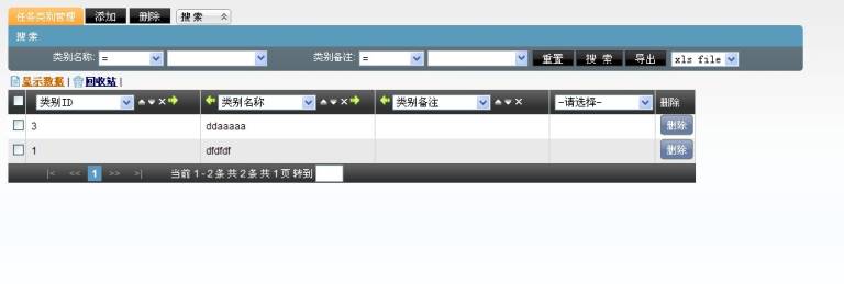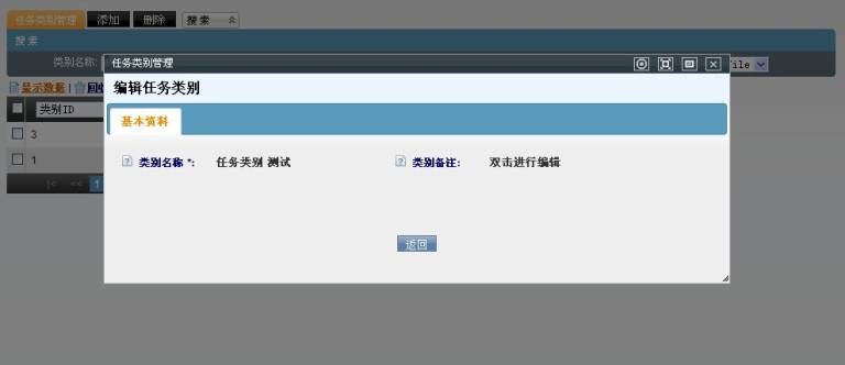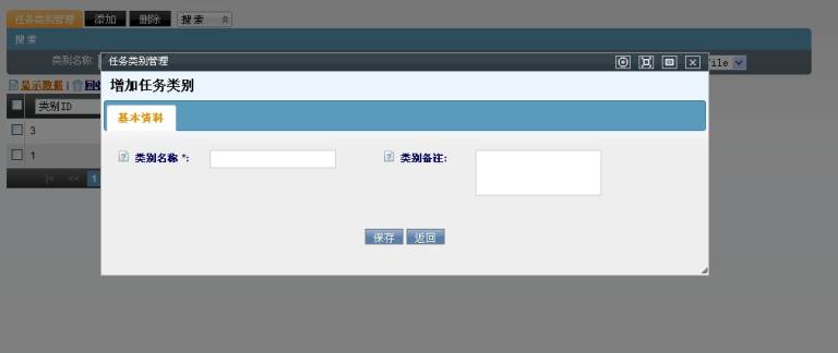 点击【保存】按钮,在任务类别管理页面会出现新增加的数据