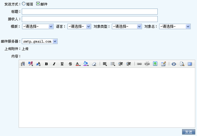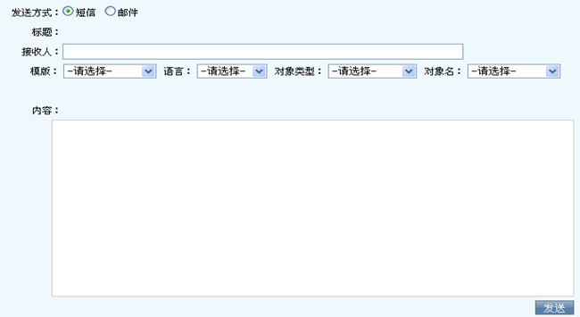 选择发送方式的不同,界面会呈现出不同的输入域,所有出现的输入域均为必须填写!