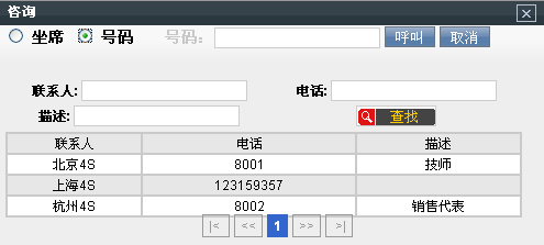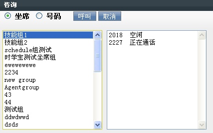 坐席用于咨询呼叫中心内部坐席,选择目标坐席所在工作组,选择坐席状态是空闲的进行呼叫。